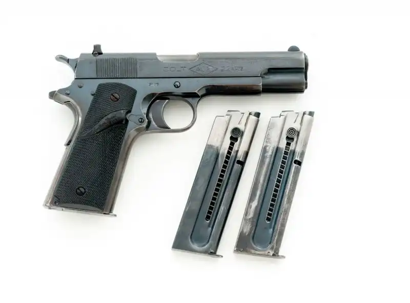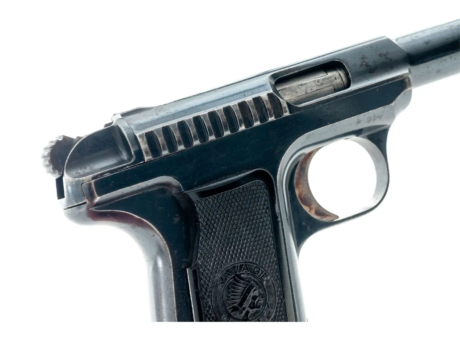 Первый в мире серийный пистолет с двухрядным магазином в рукоятке.