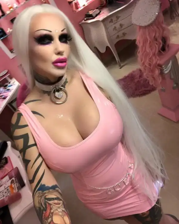 46-летняя тату-мастер, известная под псевдонимом Китти Инк, из Вены, Австрия, с детства испытывала любовь ко всему странному и не вписывающемуся в рамки. Её всегда не устраивала собственная внешность, но на какие-либо изменения Китти решилась лишь в 36 лет, сделав первую операцию. Теперь, спустя 10 лет, женщина потеряла им счёт.