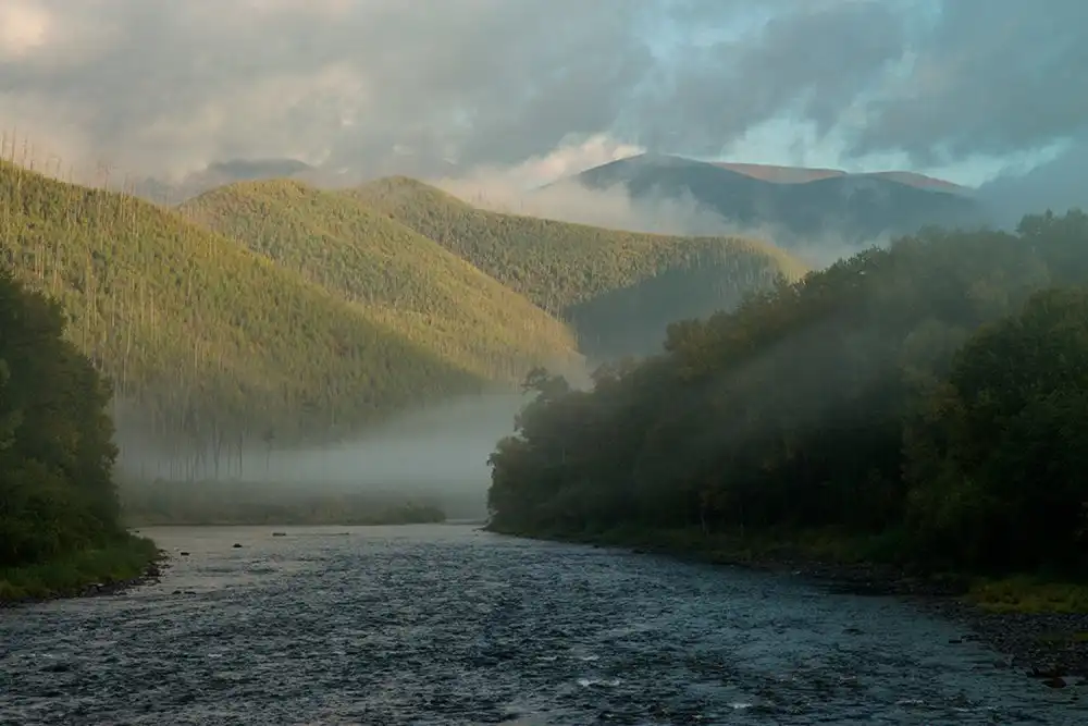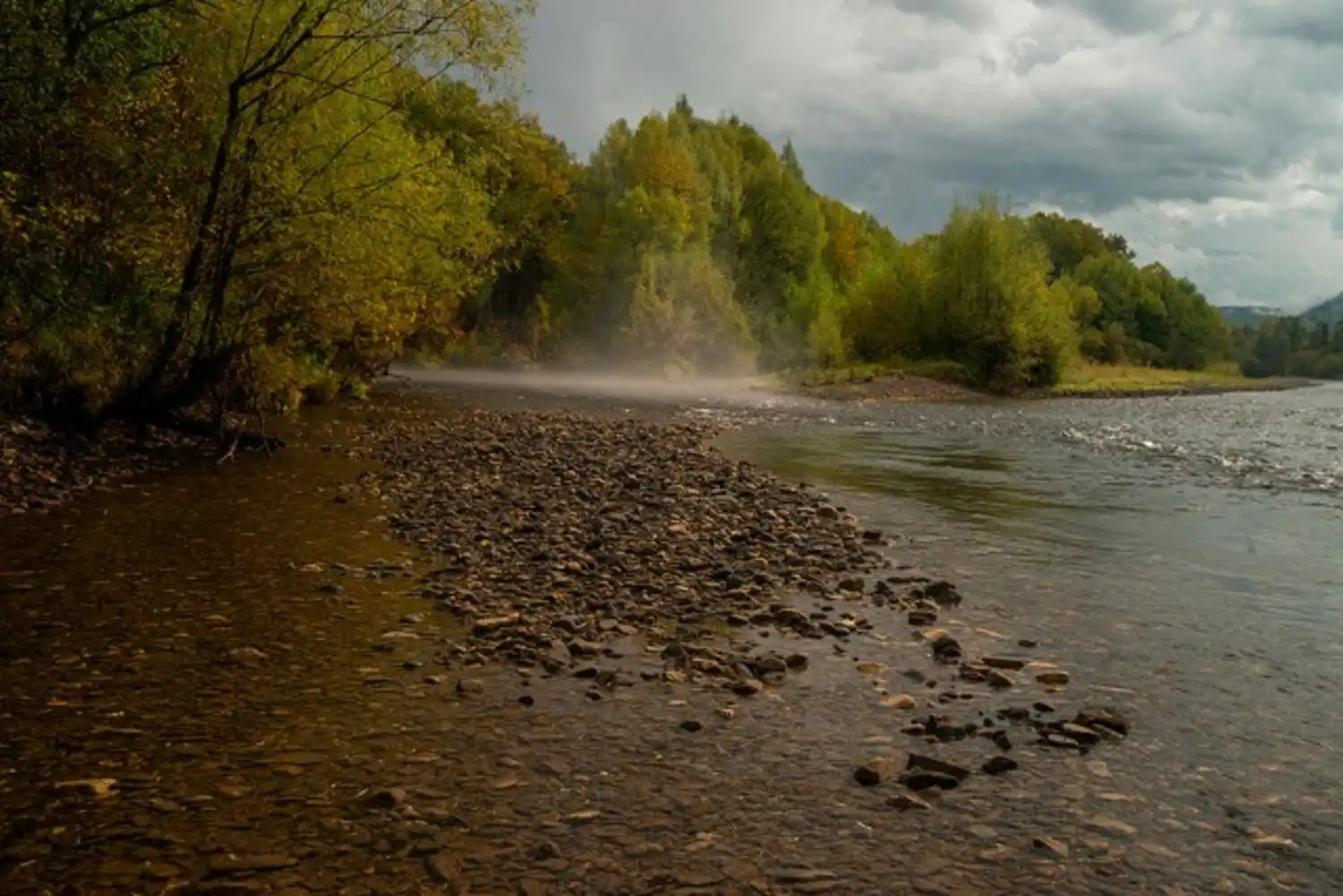 Река встретила нас прохладой и туманом.