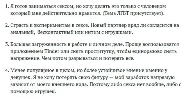 Под подростками считались 2000 респондентов от 18 до 25. Вот главные и наиболее популярные варианты ответов в порядке убывания: