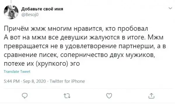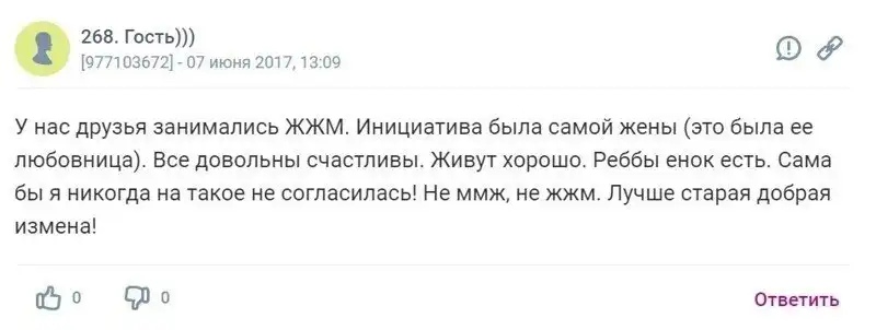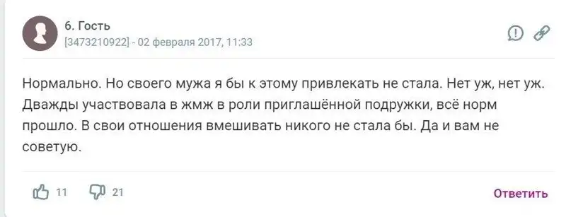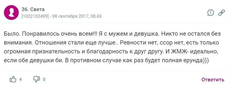 "Было круто": мужчины и женщины рассказывают про опыт ЖМЖ