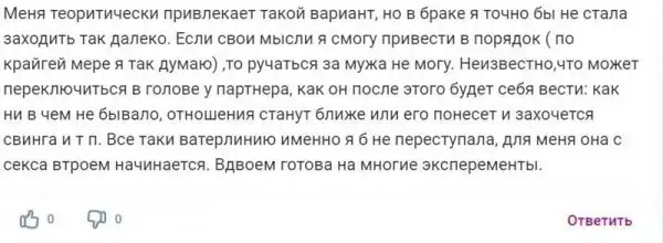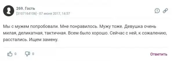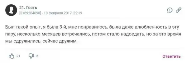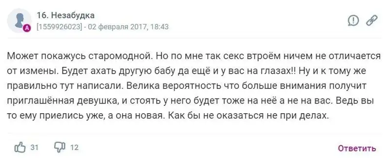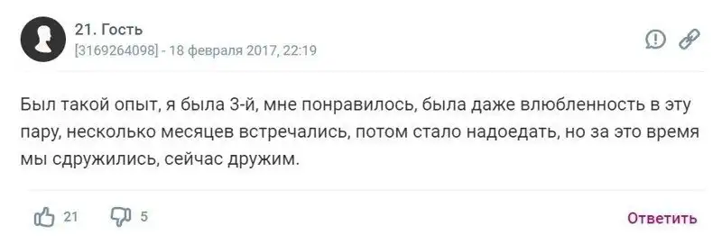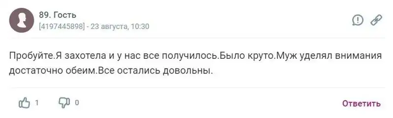 Постель - место, в которое не принято пускать третьего человека. Герои данной подборки нарушили это правило, а своими ощущениями от случившегося поделились в соцсетях и на форумах. А как к таким экспериментам относитесь вы?