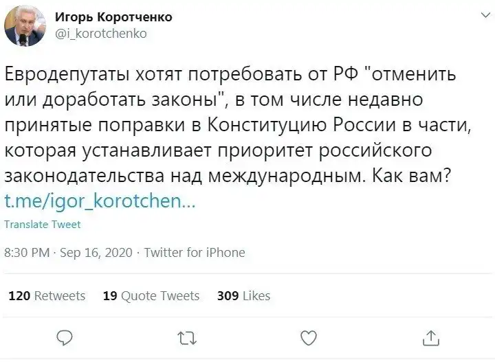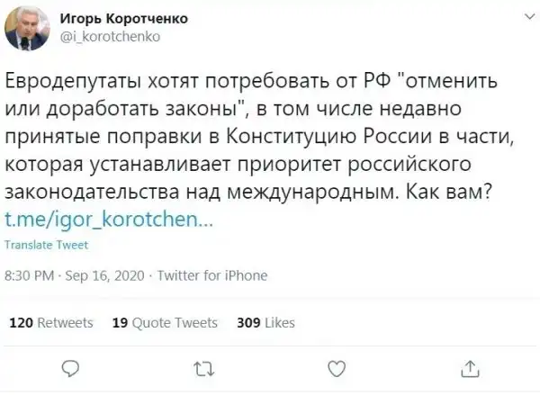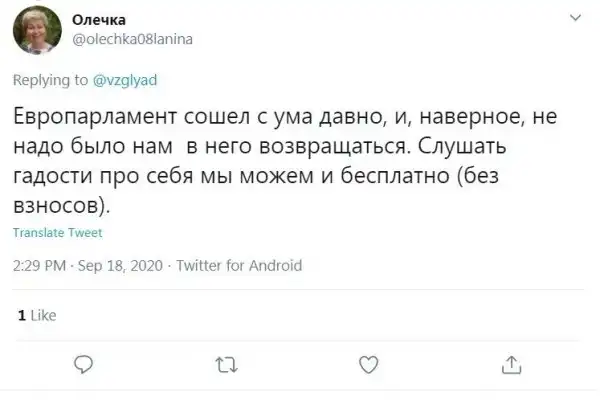 Задело данное заявление Европарламента даже тех, кто голосовал против поправок