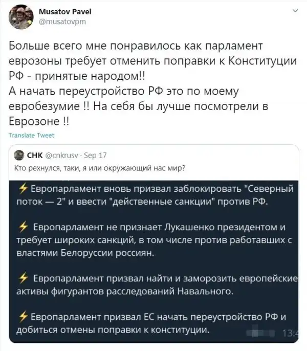 Недавний призыв Европарламента признать поправки в Конституцию РФ недействительными и отменить их не застал пользователей соцсетей врасплох. Они уже поделились своим мнением, а что по поводу всего этого думаете вы?