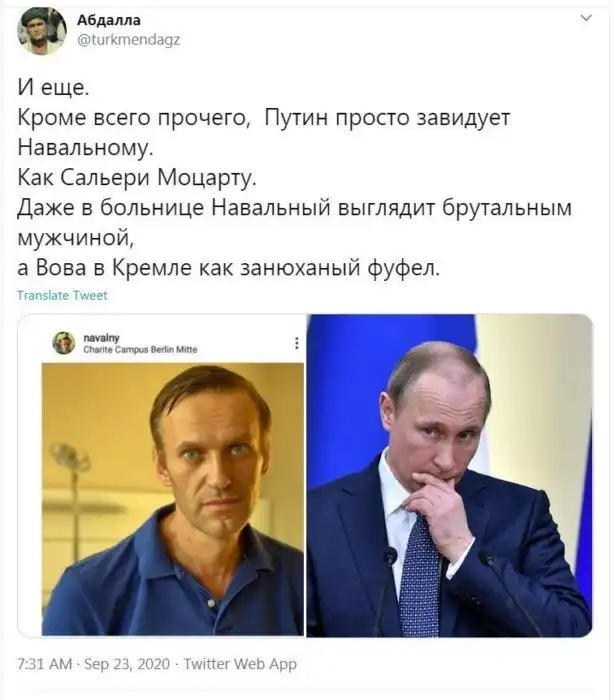 Началось все с того, что Владимир Путин, как утверждает французская газета «Монд», предположил, что Алексей Навальный сам принял яд