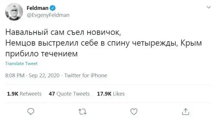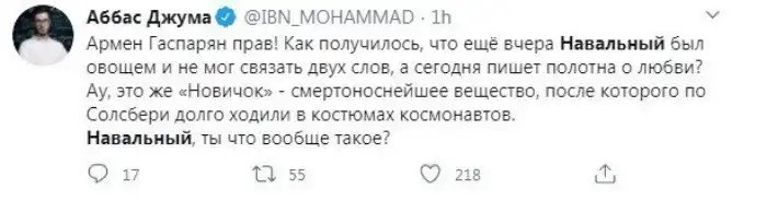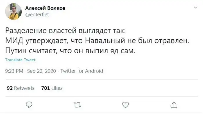 Есть версия, что Навальный - обычный смертный, просто оружие в России не очень