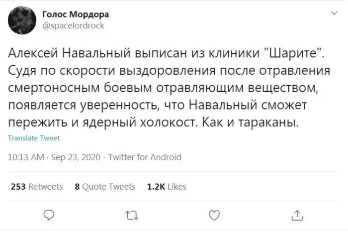 Российский оппозиционный политик Алексей Навальный выписался из стационара берлинской клиники "Шарите", а пользователи соцсетей уже дали этой новости свою оценку... и тут еще это заявление Путина.