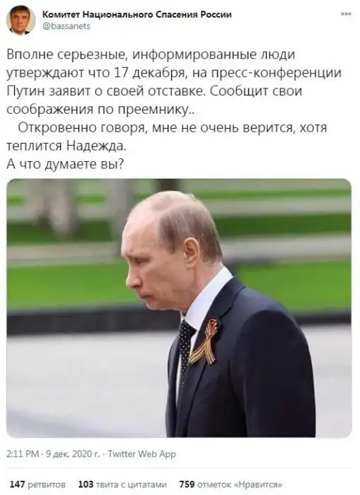 "Путин уйдет в отставку": прогнозы пользователей соцсетей на пресс-конференцию Президента РФ