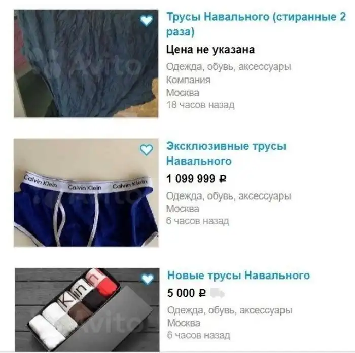 "Постирано ФСБ": объявления о продаже трусов Навального на Авито