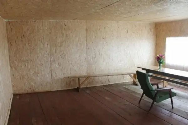 Глава Глазовского района в Удмуртии Вячеслав Сабреков рассказал на странице во «ВКонтакте» о «торжественном открытии» беседки в деревне Кабаково. На фотографиях видно, что она представляет собой сооружение с голыми стенами из профнастила, одним креслом, скамьёй и дощатым полом.