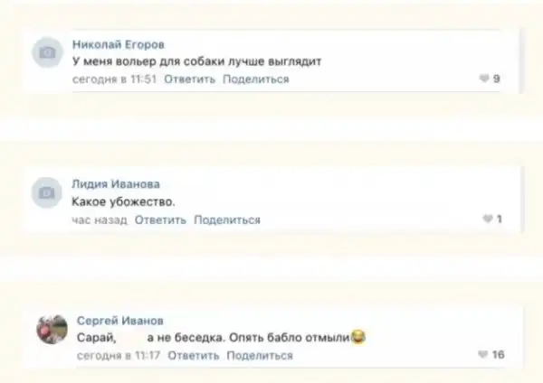 Пользователи соцсети восприняли новость негативно. Они отметили, что «вольер для собак выглядят лучше», а кто-то назвал беседку «сараем» и «убожеством».
