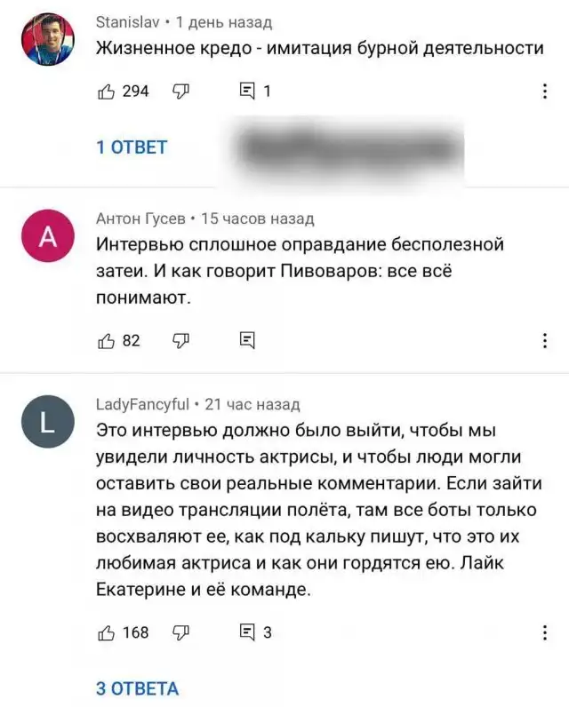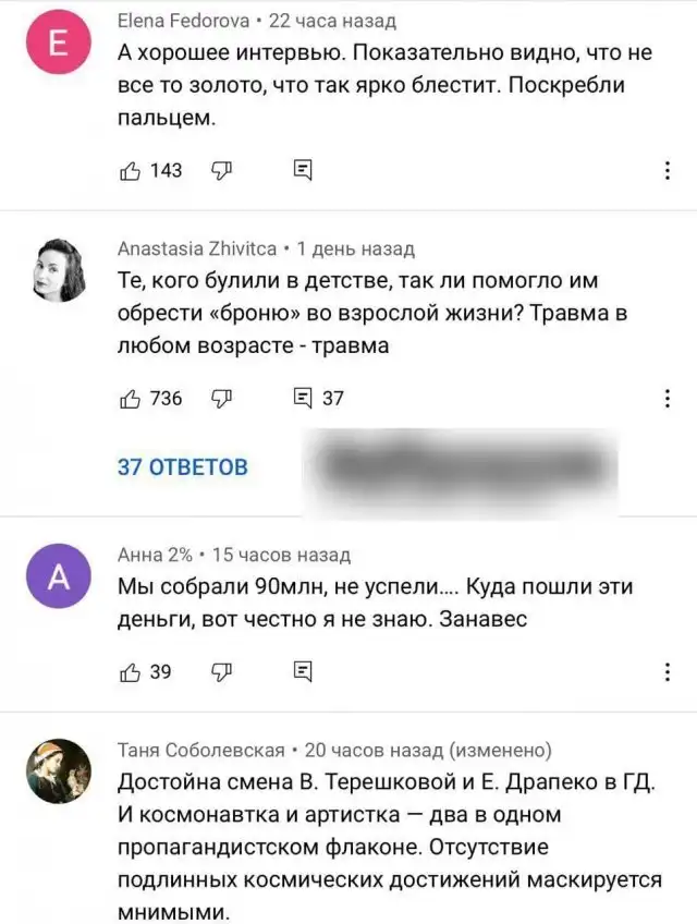 Юлия Пересильд стала первой актрисой, которая снялась в космосе. Недавно она вернулась с МКС и дала интервью Екатерине Гордеевой, где, в частности, ответила на вопрос, о том, что "Роскосомс" потратил на ее полет 7 миллиардов рублей (по другим данным 2 миллиарда). Якобы эти деньги можно было бы перевести в фонд "Галчонок", который возглавляет Пересильд. Что она ответила - есть в ролике. Но вот как на это отреагировали ее поклонники и все те, кто неравнодушен к этой истории?