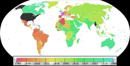 Те, кто с детства мыслят в имперской системе мер, никогда не поймут сишников-метристов. Страны, которые не приняли систему СИ в качестве основной или единственной (Либерия, Мьянма и США), отмечены чёрным цветом.