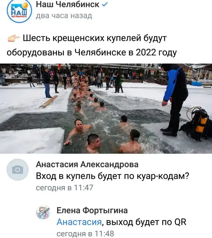 Теперь по поводу информации о допуске к купелям по QR-кодам. Все началось с подобных комментариев