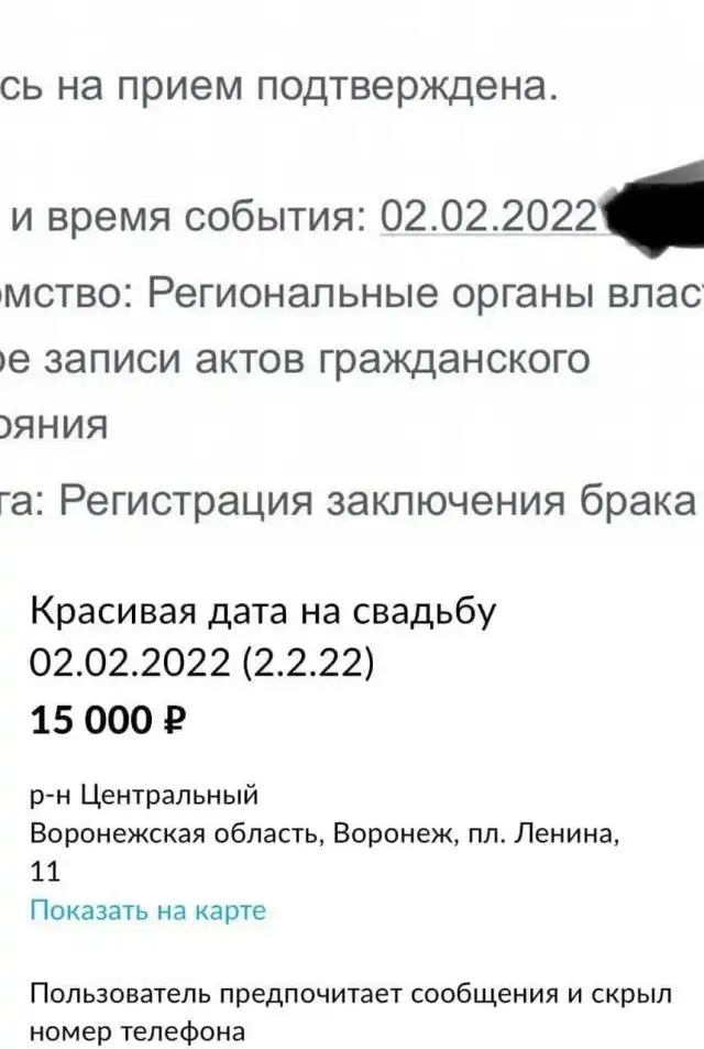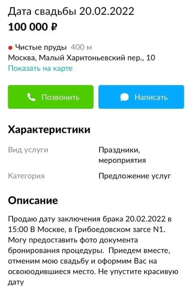 Например, вы захотели жениться (или выйти замуж) 22.02.2022. Но профукали момент и теперь все занято. Что же делать? Идти в Сети и обращаться там за помощью к местным предпринимателям. Правда, стоит это не так дешево. Но что не сделаешь ради любимого?