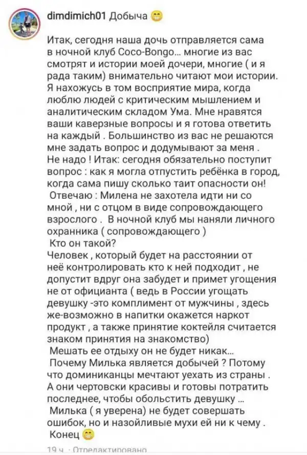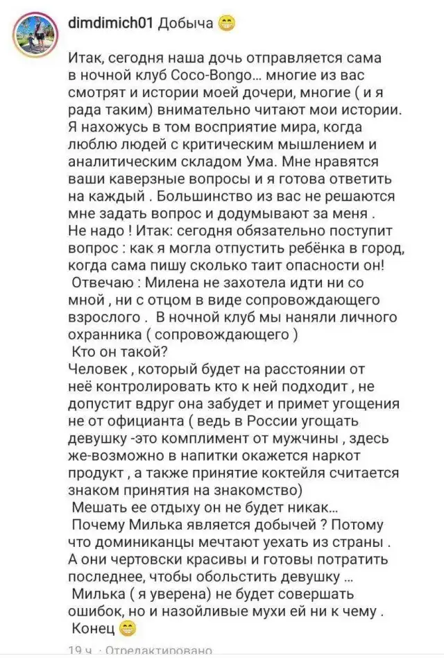Сутки назад россиянка в инсту выложила ж#пу своей дочери и рассказала, что она отправляется танцевать в доминиканский клуб одна