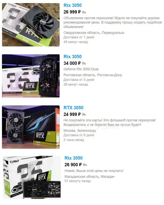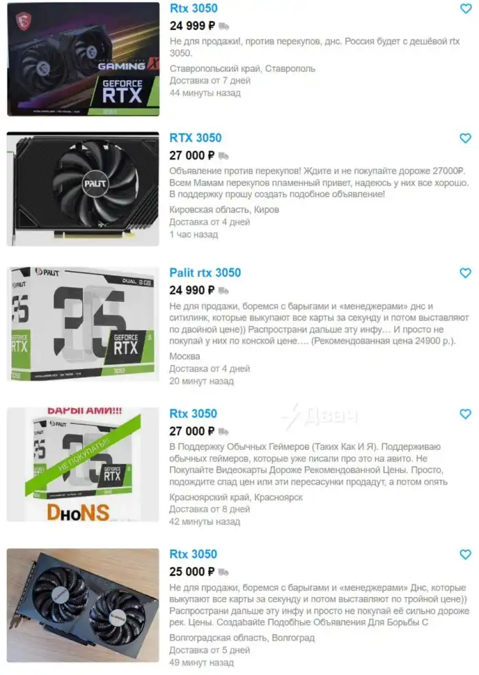 Перекупы прохавали эту тему и начали выкладывать аналогичные объявления, якобы в поддержку этого флешмоба, лишь с одним дополнением. Они писали в конце сообщения, что у них есть в наличии много видеокарт на продажу.