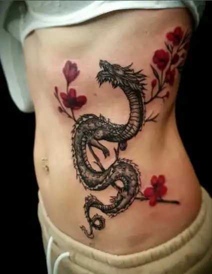 Большая цветная татуировка дракона из мульта Миядзаки. Делалась больше 15 лет назад, я была очень глупая, очень молодая. Мне было около 20-ти. Я давно ее переросла, пыталась удалить, но не перетерпела боль и не увидела эффекта от очень дорогостоящих сеансов.
