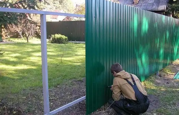 - Если вы все равно решили ставить забор из профнастила лицевой стороной к себе, то лучше будет использовать двусторонний профнастил.