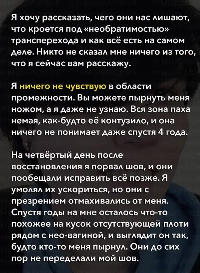 Внутри — фантомный стояк, 10-минутное мочеиспускание, вагинальное расширение и прочие «прелести».