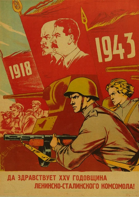 Плакат советский 'Ленинско-Сталинский комсомол' ссылка на плакат