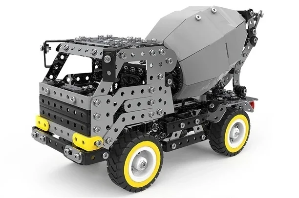 Интересный набор с металлическими деталями, болтиками и винтиками для самостоятельной сборки грузовика с бетономешалкой. ссылка на источник