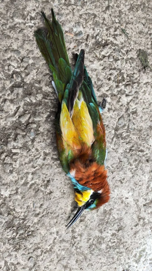 За 10 дней в ловушку попали более 30 птиц породы золотистая щурка. Почти все птицы, запутавшиеся в сетке, погибли.
