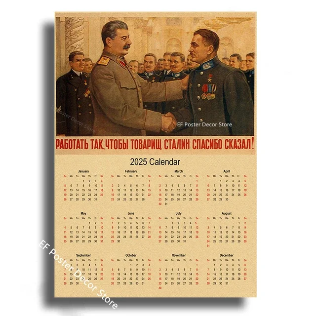 Плакат-календарь на 2025 год на стену с Иосифом Виссарионовичем "И засуху победим" на крафт бумаге в формате А3 (42х30 см). ссылка на календарь.