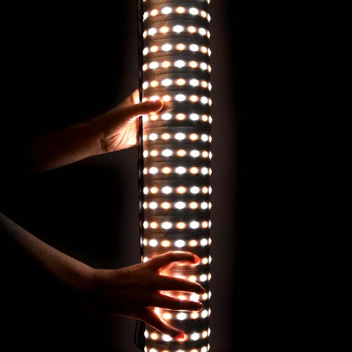 Гибкий светодиодный светильник лёгкий и пластичный — прямо как ткань сворачивается в рулон. Регулировать цветовую температуру и яркость можно с помощью пульта или в мобильном приложении. Ну, а главное, он очень удобен в перевозке, а ещё его можно закрепить на любую поверхность.