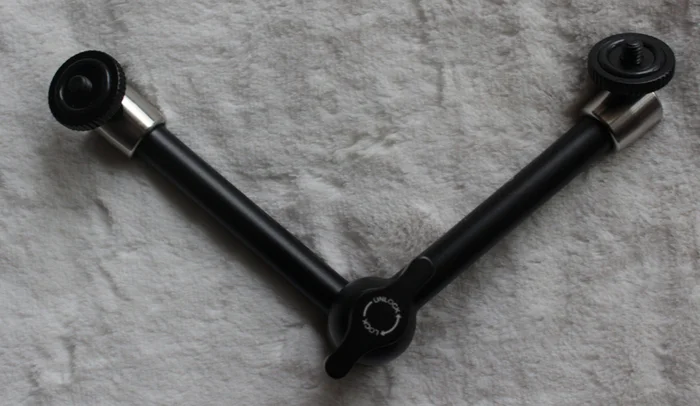 Magic arm часто работает в связке с клэмпом, но также его можно использовать отдельно. Например, закрепить монитор на клетку камеры — так очень удобно регулировать положение и наклон.