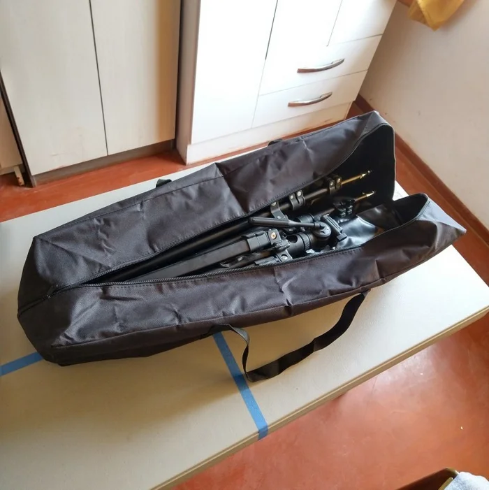 Начну с основного штатива — он подходит под большинство задач, отлично выдерживает камеру в клетке с тяжёлым объективом и монитором. У меня качественная и профессиональная модель с головой для плавного движения.