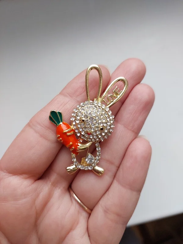 Прикольный зайчик с морковкой. ссылка на брошку