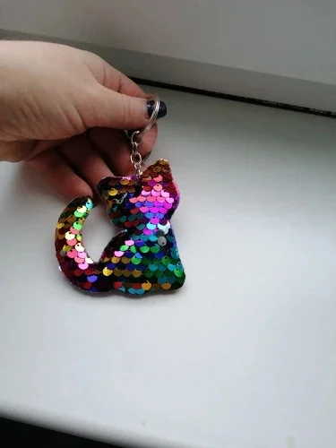 Брелок в виде кота с разноцветными блёстками. Стоит 70 руб. Ссылка на него