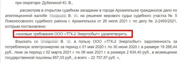 Помимо историй о помощи, мне также поиск принес кое-что из банка решений судов. Судилась Виктория С. из-за неуплаты за свет.