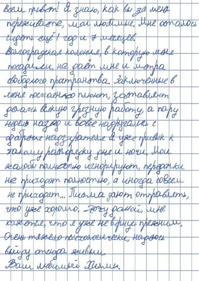 В социальных сетях активно обсуждается скриншот записки, якобы отправленной Хилми из колонии. Однако это не единственное сообщение, приписываемое ему. Ранее в официальном Telegram-канале, связанном с Хилми, было опубликовано еще одно письмо, в котором он выражал недовольство условиями своей жизни.