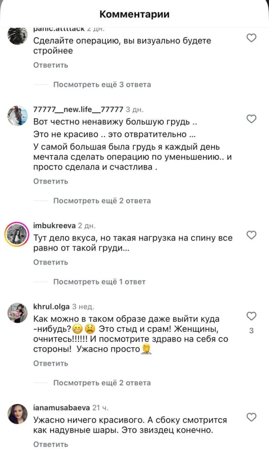 Некоторые советовали обладательницам большой груди рассмотреть возможность операции по её уменьшению вместо покупки неэстетичного белья. Однако не у всех есть финансовая возможность для такого шага, а кто-то просто не хочет расставаться с таким "богатством".