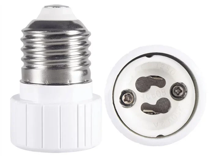 Специальный патрон с адаптером для гнезда с цоколем E27 с переходом на цоколь GU10. Стоит такой 146 руб. ссылка на источник