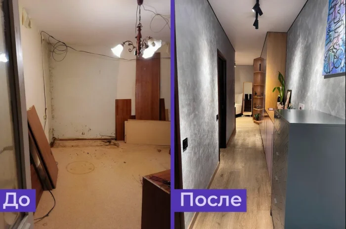 Эту квартиру за 12,5 миллионов рублей приобрёл мужчина по имени Александр. Он вложил ещё 7 миллионов в капитальную реконструкцию: полностью обновил инженерные сети, провёл несколько профессиональных дезинсекций, полностью переделал отделку стен, полов и потолков. В результате за год неприглядная двухкомнатная квартира превратилась в современное комфортабельное жильё.