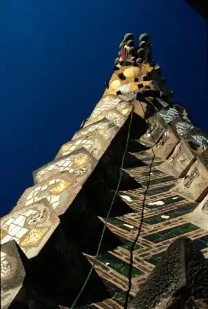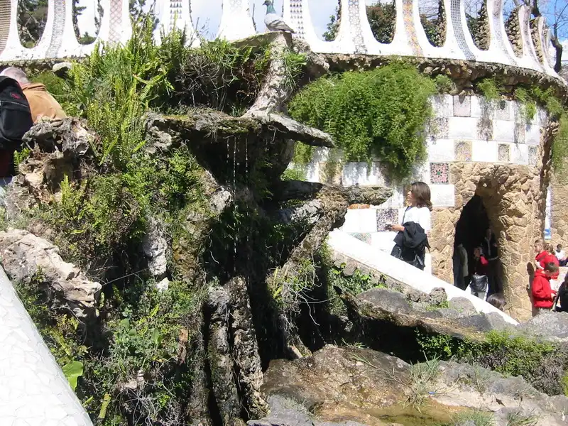 Парк Гуэль - одно из самых интересных творений из наследия Гауди. Парк стал городским садом, туристской жемчужиной Барселоны и, по решению ЮНЕСКО, достоянием человечества. Там мы видим образцы смелости художника, его нежелание считаться с общепринятым: громадного дракона на развилке пышно украшенной лестницы, дома и павильоны, похожие на гребнистые раковины, знаменитые колонны зала Гипостиль, пешеходную дорожку под сводами, будто вырастающими из скалы. Парк Гуэль - самое жизнерадостное произведение Гауди. Граф купил огромный участок земли, чтобы построить на нем город будущего, город-сад. Однако города не получилось: под застройку было продано только два земельных участка. Зато парк получился отличный. Гауди успел соорудить эстакады для машин и пешеходные дорожки, спрятанные в причудливых галереях, парящую над парком площадь, витиеватые лестницы и пряничные домики у входа. Парадная лестница с керамической балюстрадой, с драконами и змеями, изрыгающими каскады воды, ведет к базарной площади, украшенной 86-ю шестиметровыми дорическими колоннами. Волнистый потолок рынка выложен мозаикой и украшен медальонами. Колонны служат основанием для большой террасы, а украшением террасы является знаменитая извивающаяся 200-метровая скамейка с изумительной красоты мозаичной балюстрадой.