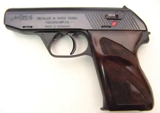 HK-4 стал первым пистолетом, созданным ныне всемирно знаменитой немецкой компанией Heckler-Koch. Первые прототипы малокалиберного пистолета под патрон кольцевого воспламенения были разработаны Алексом Зайделем (Alex Seidel, один из основателей фирмы Хеклер-Кох) еще в 1952 году. За основу этих прототипов Зайдель взял довоенный пистолет Mauser HSc, в разработке которого он принимал самое активное участие, будучи сотрудником фирмы Маузер. Из-за возникших юридических проблем по поводу патентов фирмы Маузер эти прототипы так в серию и не пошли. В 1964 году Зайдель возглавил разработку нового компактного пистолета, пригодного как для полицейского, так и для гражданского использования. Этот пистолет, обозначенный как HK-4, должен был легко конвертироваться в один из четырех калибров - 5.6мм кольцевого воспламенения, а также 6.35мм Браунинг, 7.65мм Браунинг и 9мм Браунинг короткий. Отсюда происходит и индекс "4" в обозначении пистолета. Серийное производство HK-4 было начато в 1968 году и закончено в 1984. Всего было выпущено порядка 36 тысяч пистолетов HK-4, из них примерно 12 тысяч было закуплено немецкой полицией, остальные были проданы на гражданском рынке и отправлены на экспорт.