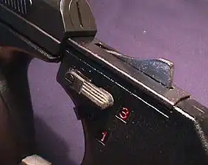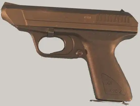 1. Самовзводный УСМ (двойного действия) с предохранителем на левой стороне рамки. Нажатие рычажка предохранителя вниз из положения «огонь» снимает курок с боевого взвода, после чего рычажок автоматически возвращается в положение «огонь»