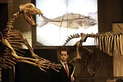 На аукционе Кристи в Париже на продажу выставлены редчайшие лоты - доисторические млекопитающие. Скелет сибирского мамонта (животное погибло 15 тысяч лет назад) ушел с молотка за 260 тысяч евро в коллекцию анонимного покупателя