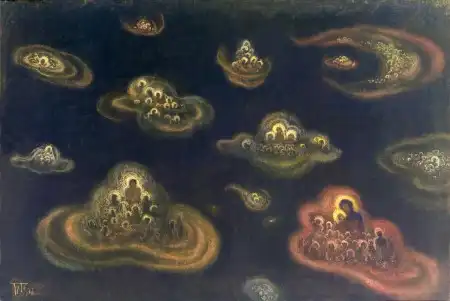 Борис Смирнов-Русецкий (1905-1993) - продолжатель традиций русского космизма, член группы художников "Амаравелла", возникшей в России в 20-х годах ХХ века. В своих необычайно смелых по мысли картинах эти художники-космисты воплощали то, о чем писали ученые К.Э.Циолковский, В.И.Вернадский, А.Л.Чижевский.