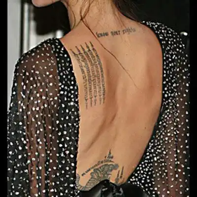 Открывает список многодетная мать и голливудская актриса по совместительству, бесспорная поклонница татуировок, которая одна могла бы представить собой галлерею тату, Аджелина Джоли…