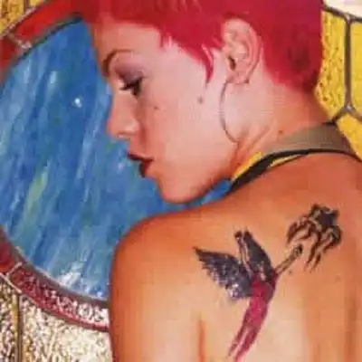 А это - тот случай, когда картинка совершенно не подходит её владелице...Лопатки светской тусовщицы Николь Ричи украшают два ангельских крылышка...