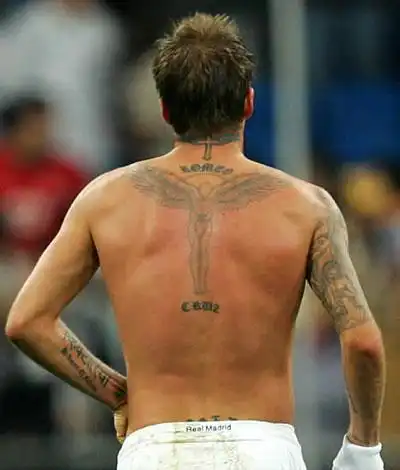 Жена футболиста Дэвида Бекхэма украсила свою шею тату в виде арабской вязи...