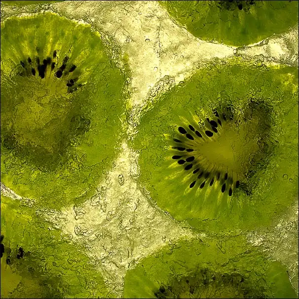 Плоды киви тщательно помойте под струей горячей воды, аккуратно очистите острым ножом от кожуры, а затем с помощью блендера из очищенной мякоти приготовьте однородное пюре. Фильтр этого блендера легко отделит сок от семян и косточек. Яичные белки также взбейте блендером с оставшимся сахарным песком и потом перемешайте с готовым пюре из мякоти киви.