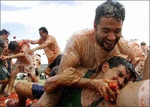 В последнюю среду последнего летнего месяца население городка Буньоль, что в 50 километрах от Валенсии, возрастает в несколько раз. Желающих метнуть друг в друга смятый в руке помидор во много раз превышает 9 тысяч человек, проживающих в городе...