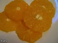 Положить на блюдце кружок апельсина (или яблока) и посыпать его сахаром, орехами и кокосовой стружкой.
