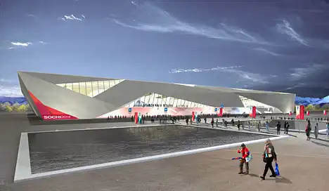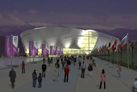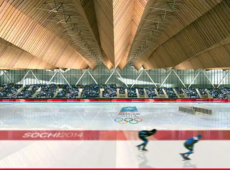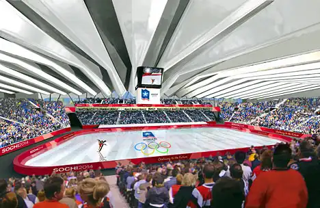 Стадион, где будут проходить соревнования по конькобежному спорту, экстерьер